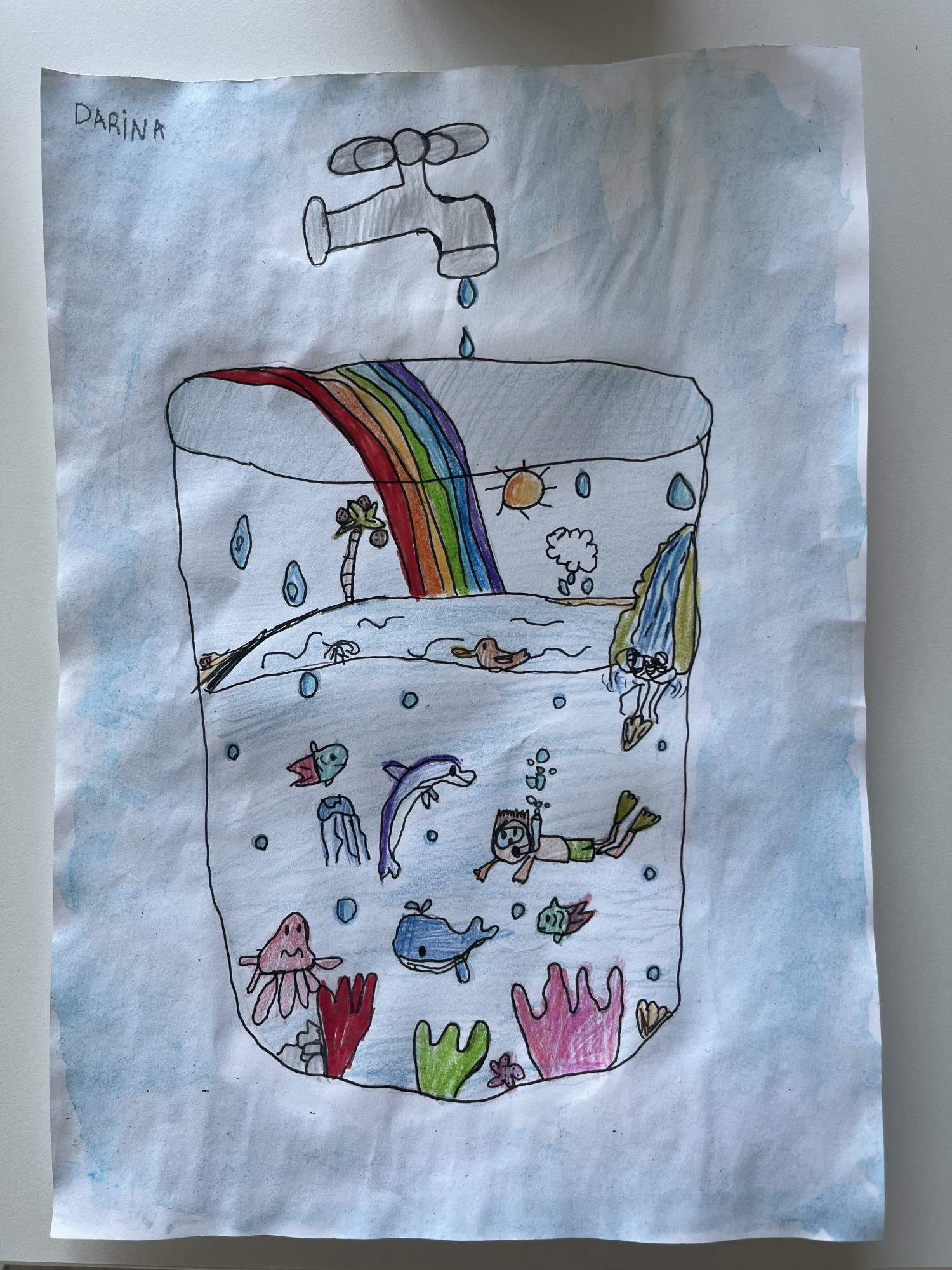 Lai visi akvārija iemītnieki būtu laimīgi - spīd saule, līst ūdens un veidojās skaista varavīksne.