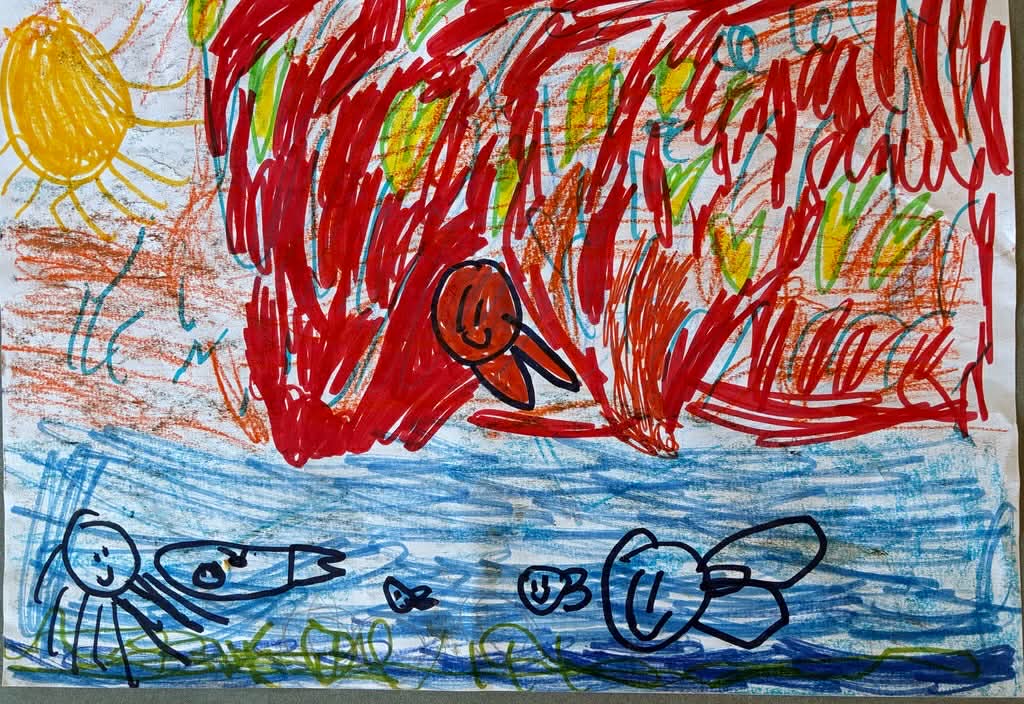 Pavasara vakarā, kad saule riet, upē redzamas lidojošās zivis.
