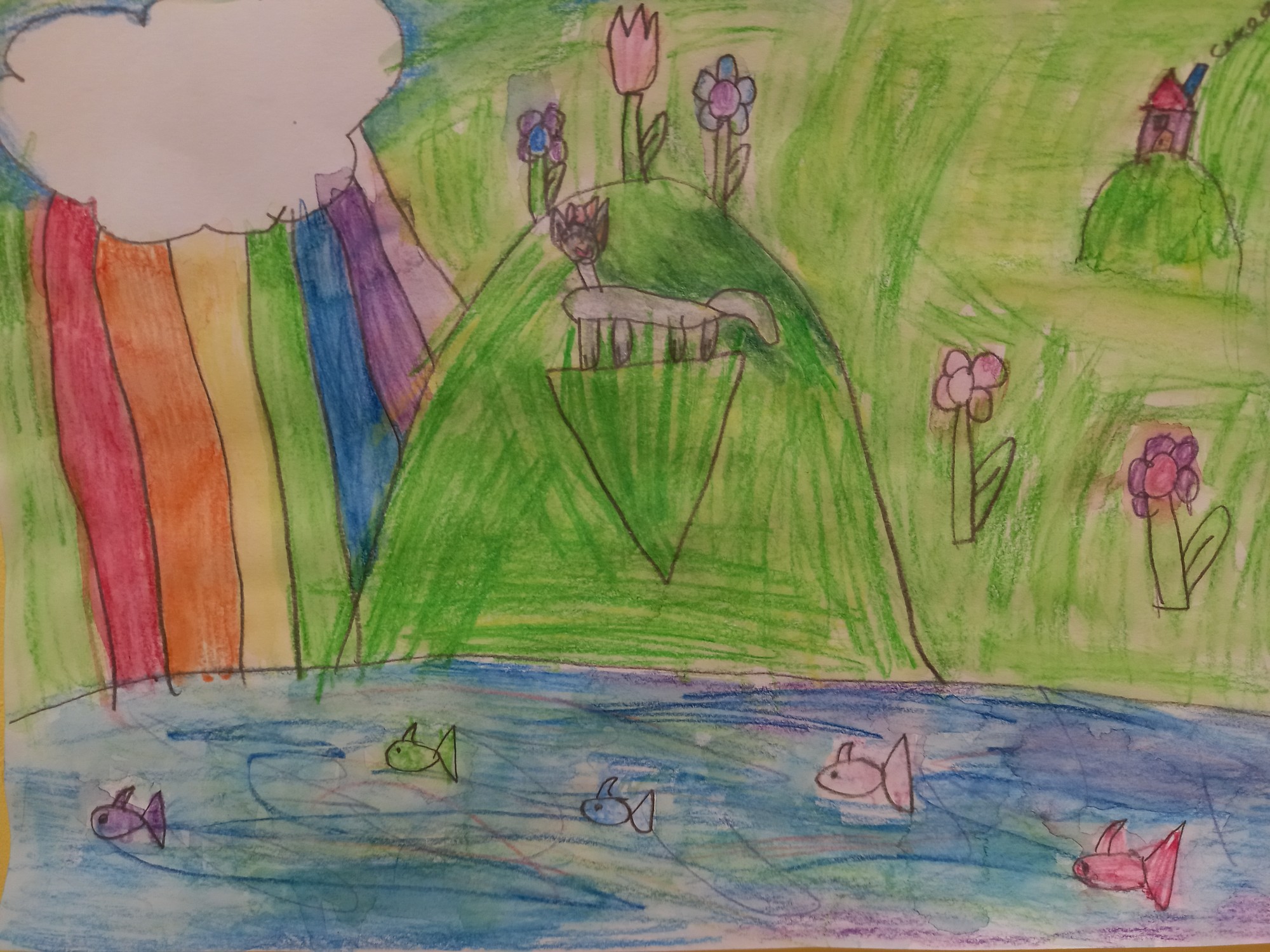 Es uzzīmēju skaistāko vietu, kurā dzīvoju. Stāmerienas ezerā dzīvo daudz skaistu zivtiņu.Man patīk dzīvot Stāmerienā un zivtiņām arī, jo te ir skaisti!