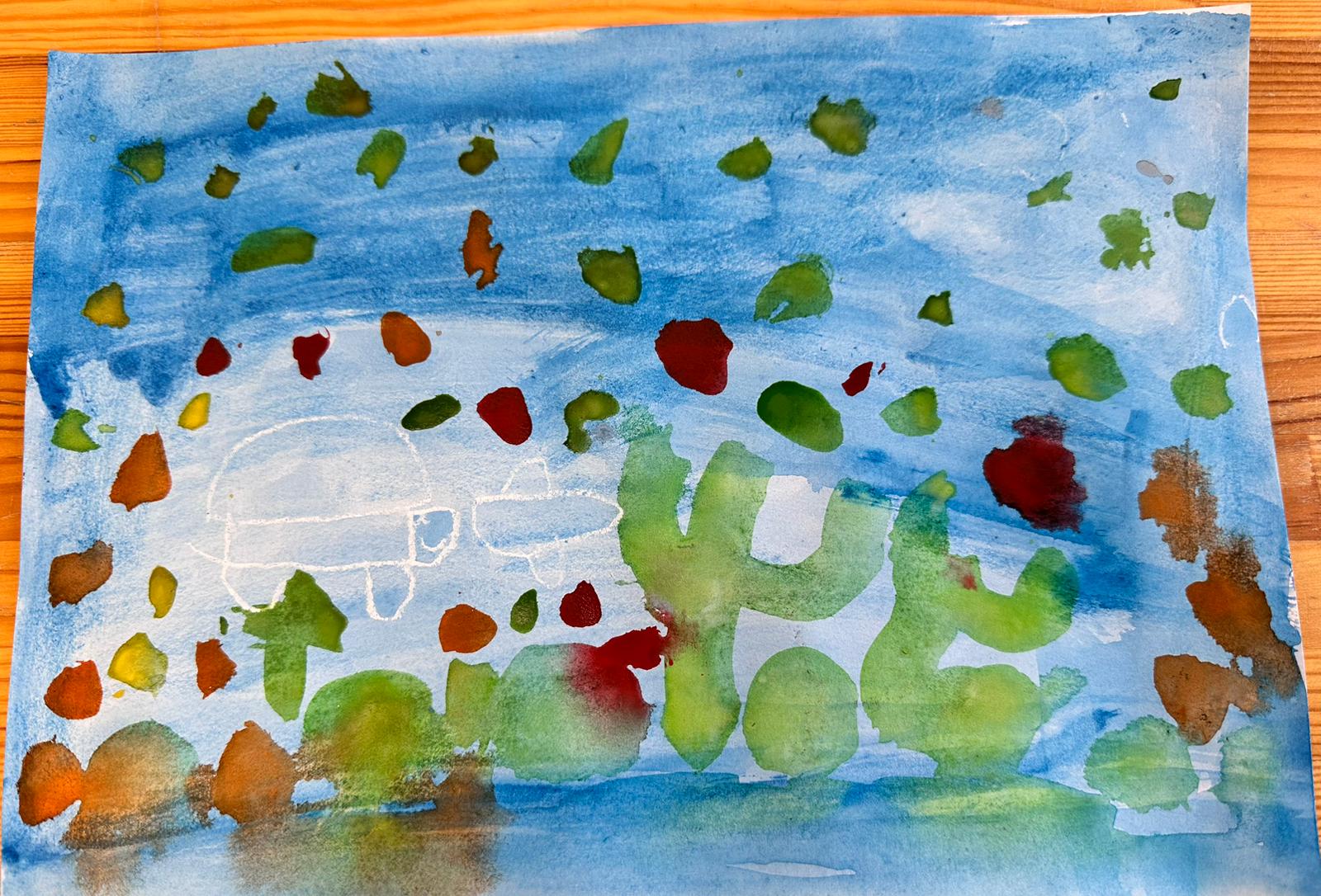 Zems ūdens ir redzami dažādi ūdens augi. Tur peld zivtiņas un bruņurupuči.