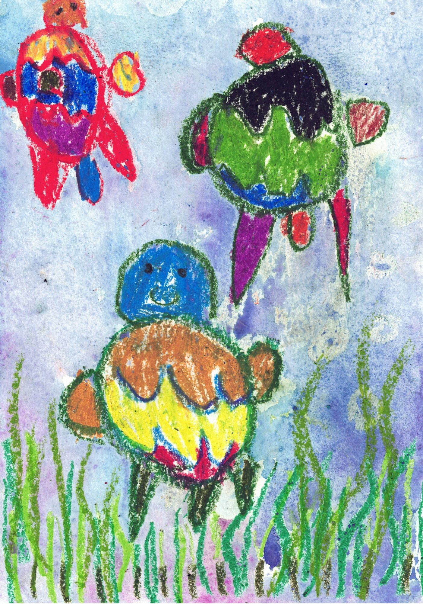 Dziļi zem ūdens dzīvoja bruņurupuču ģimene- mamma, tētis un mazais, kuri vienmēr turējās kopā starp šūpojošām jūras zālēm.