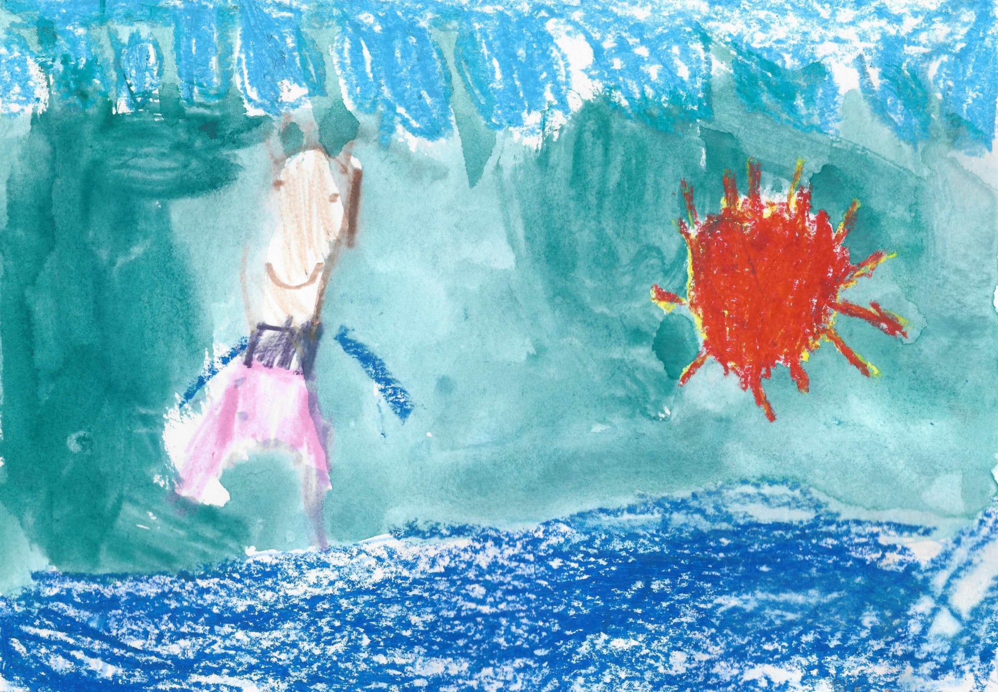 Tehnika: akvarelis un vaska krītiņi, flomāsteri. A4