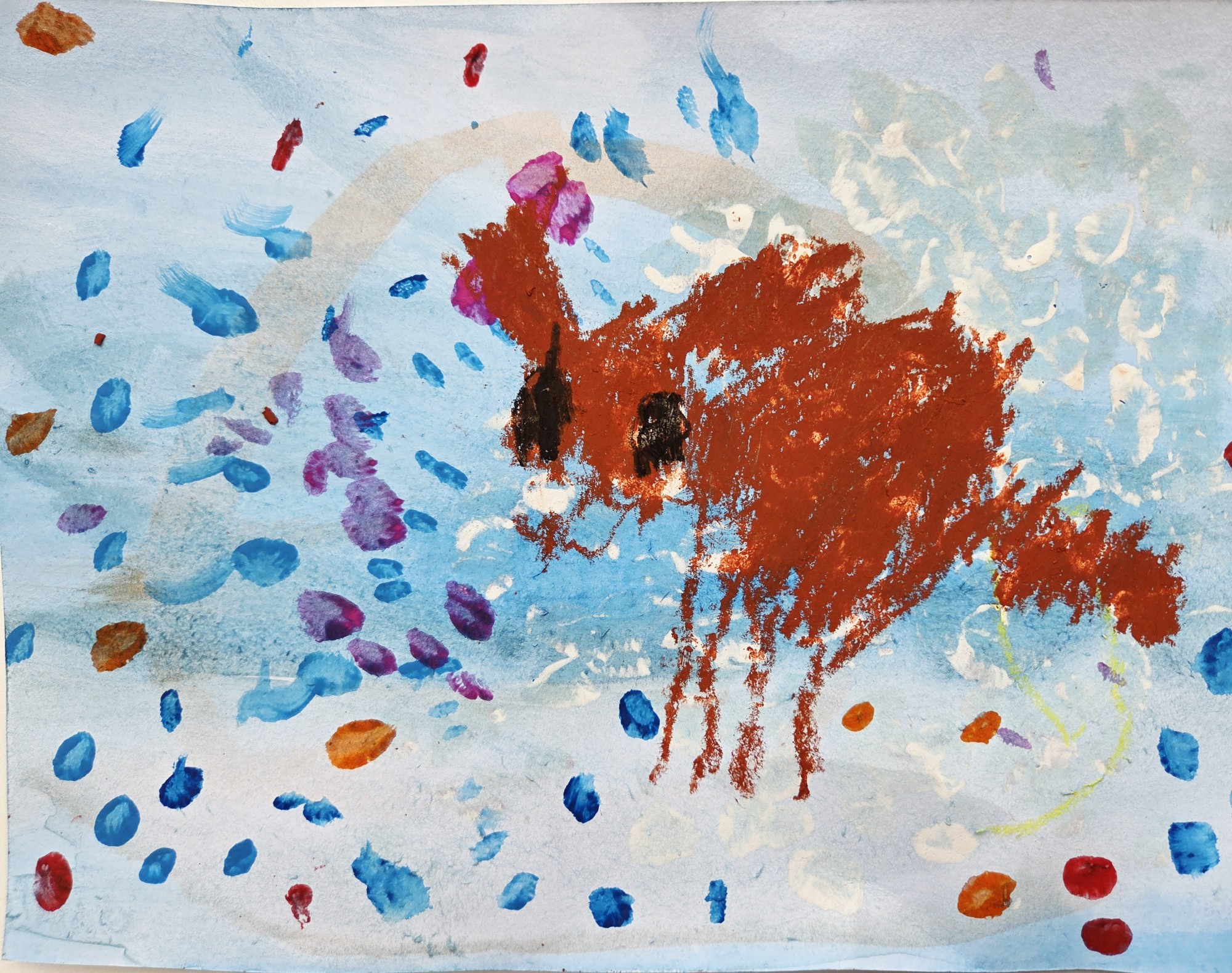 Mans sunītis ķer burbuļus, kurus es pūšu.