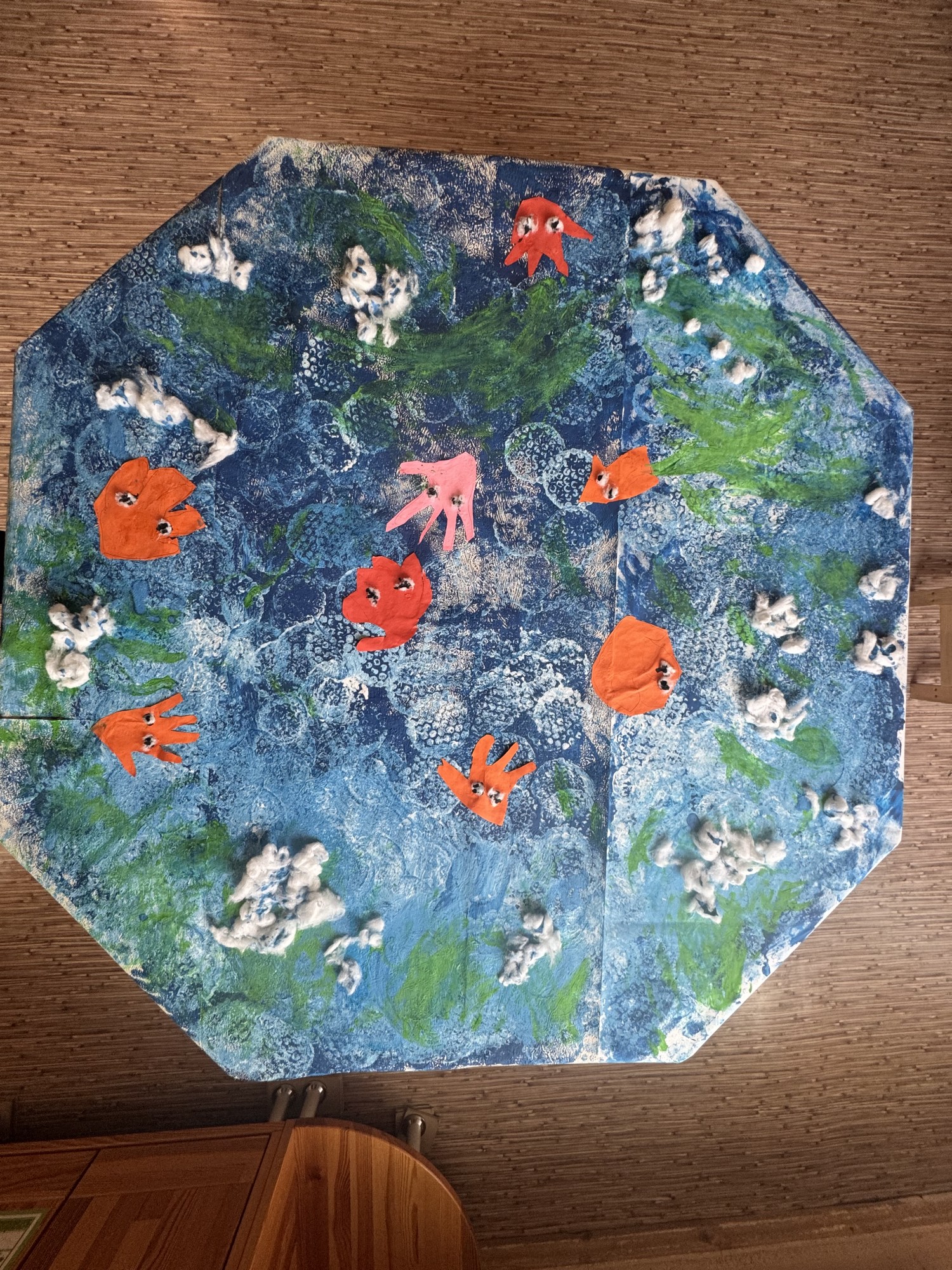 Pēc bērnu teiktā, šeit attēlots - jūra, haizivs, zivs, ledus, tīrs un netīrs un kaut kur pāri lietus.