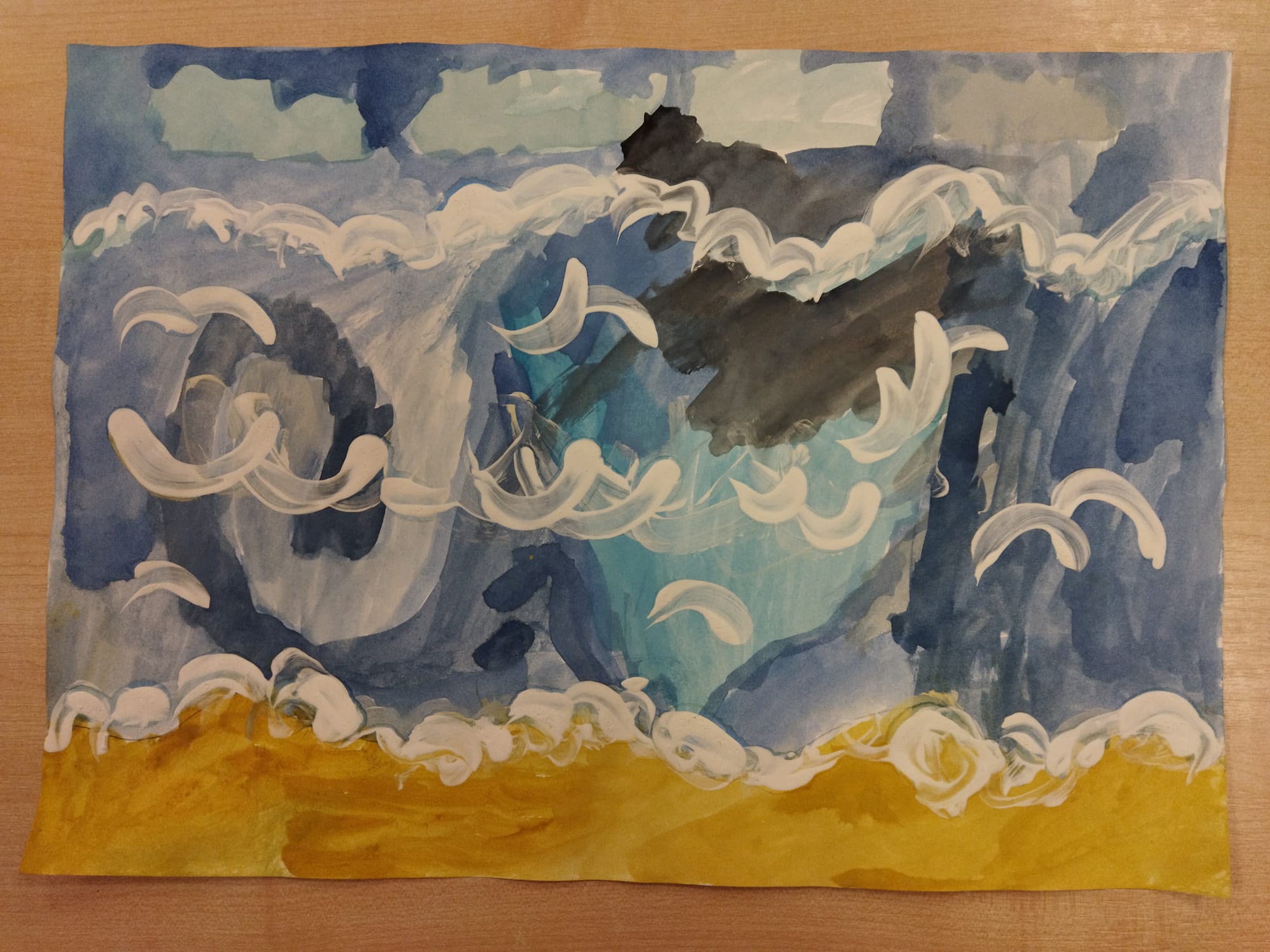 Lieli zilie viļņi šūpojas un puto pie smilšainā krasta.