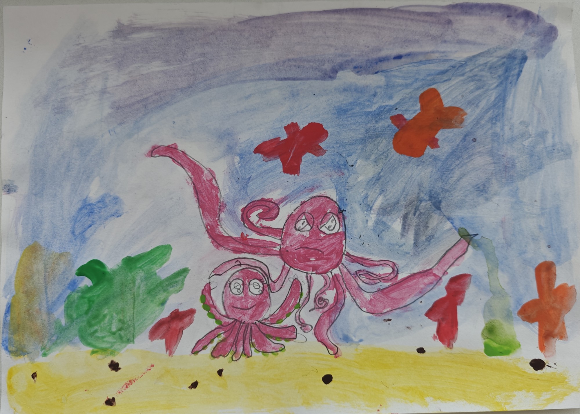 Pēc savas izvēles bērns glezno zemūdens pasaules iemītniekus. Izpētot enciklopēdijas, attēlus, video materiālus.