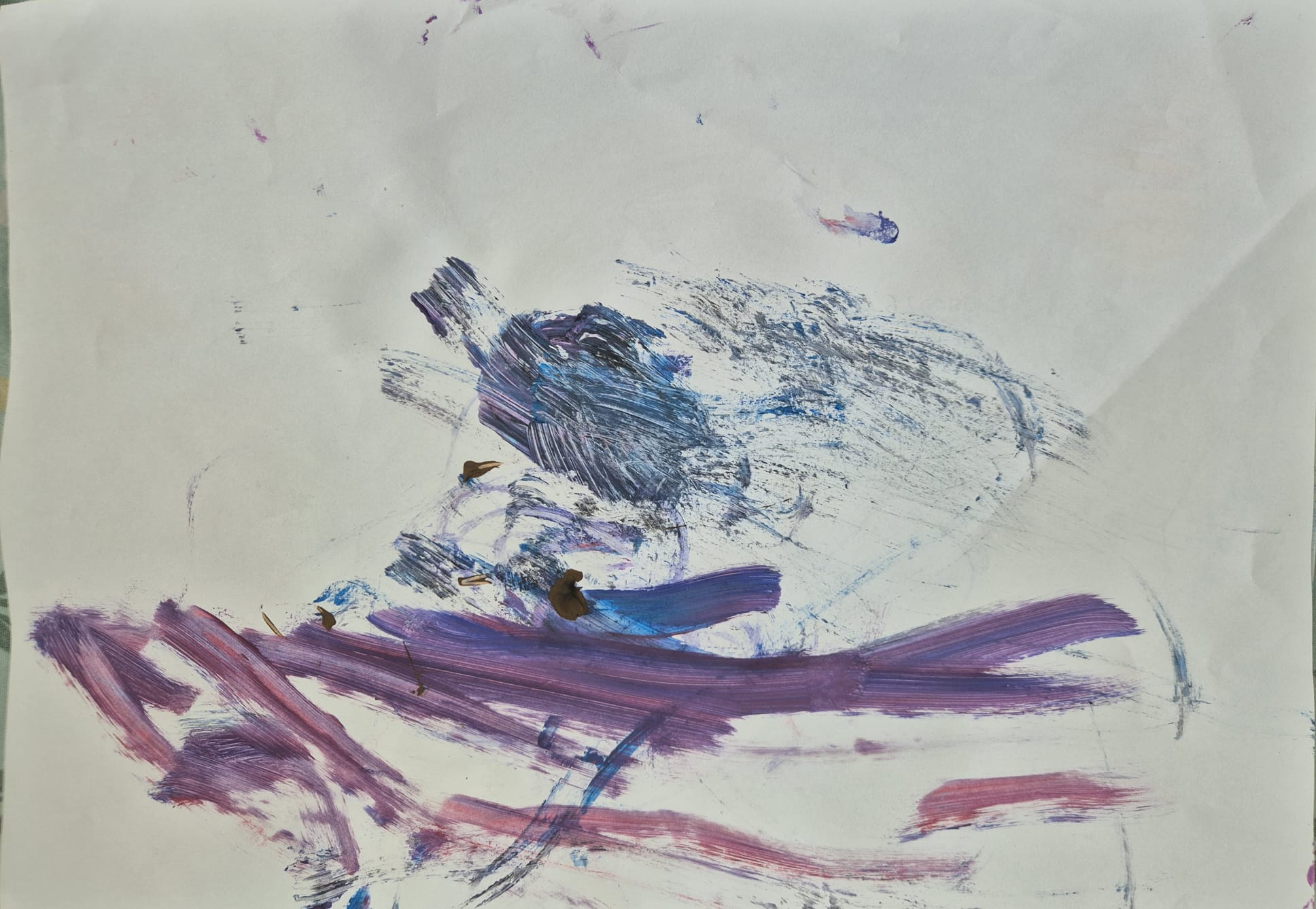 Divgadīgā Renāte ar krāsām attēloja ūdens kustību. Zilie un violetie triepieni atgādina viļņus un plūstošu ūdeni. Šī glezna parāda, cik brīvi un dzīvīgi var kustēties ūdens.