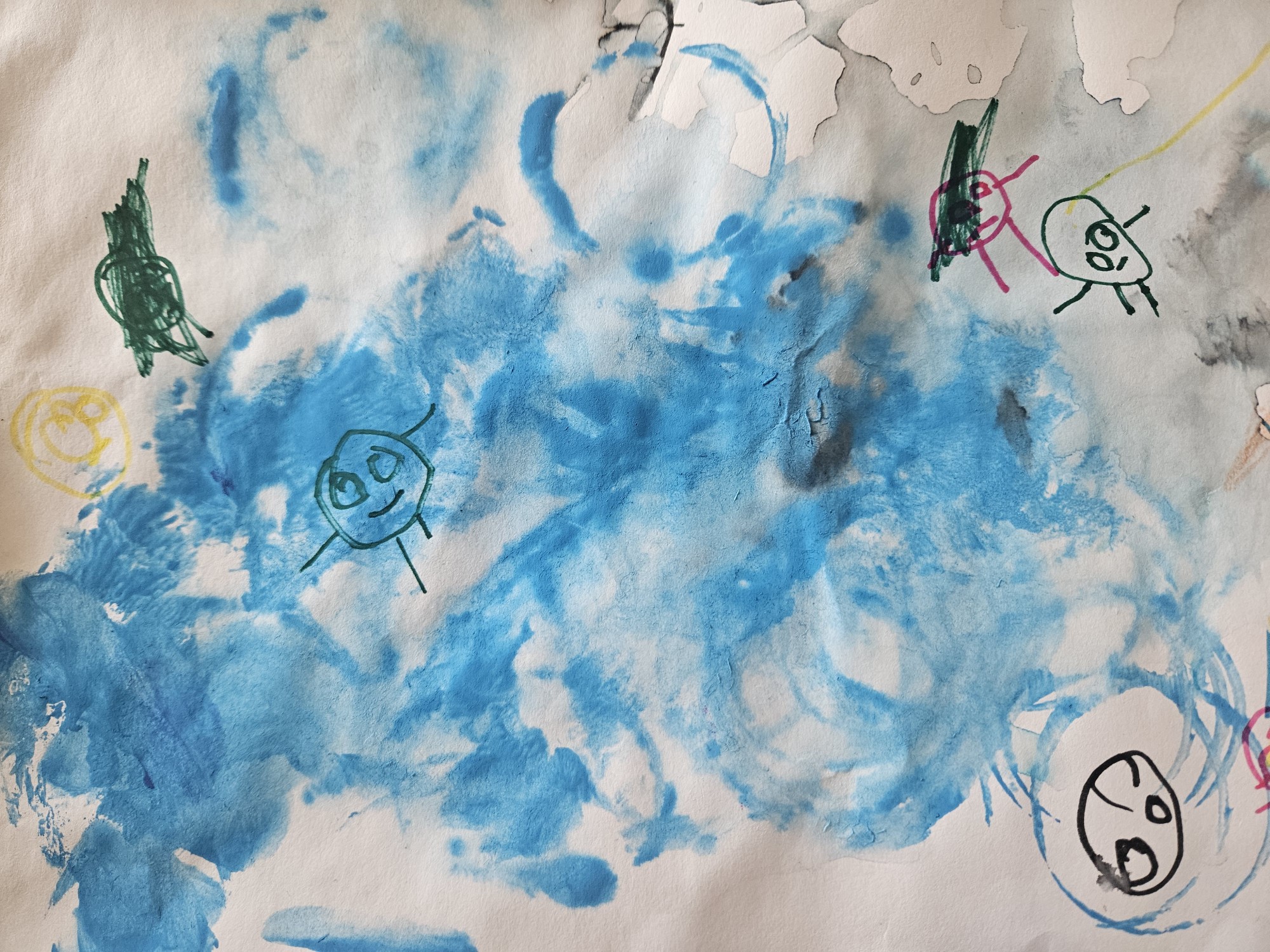 Te ir mani draugi ūdenī . Mēs šļakstāmies un priecājamies. Ūdens ir jautrs.