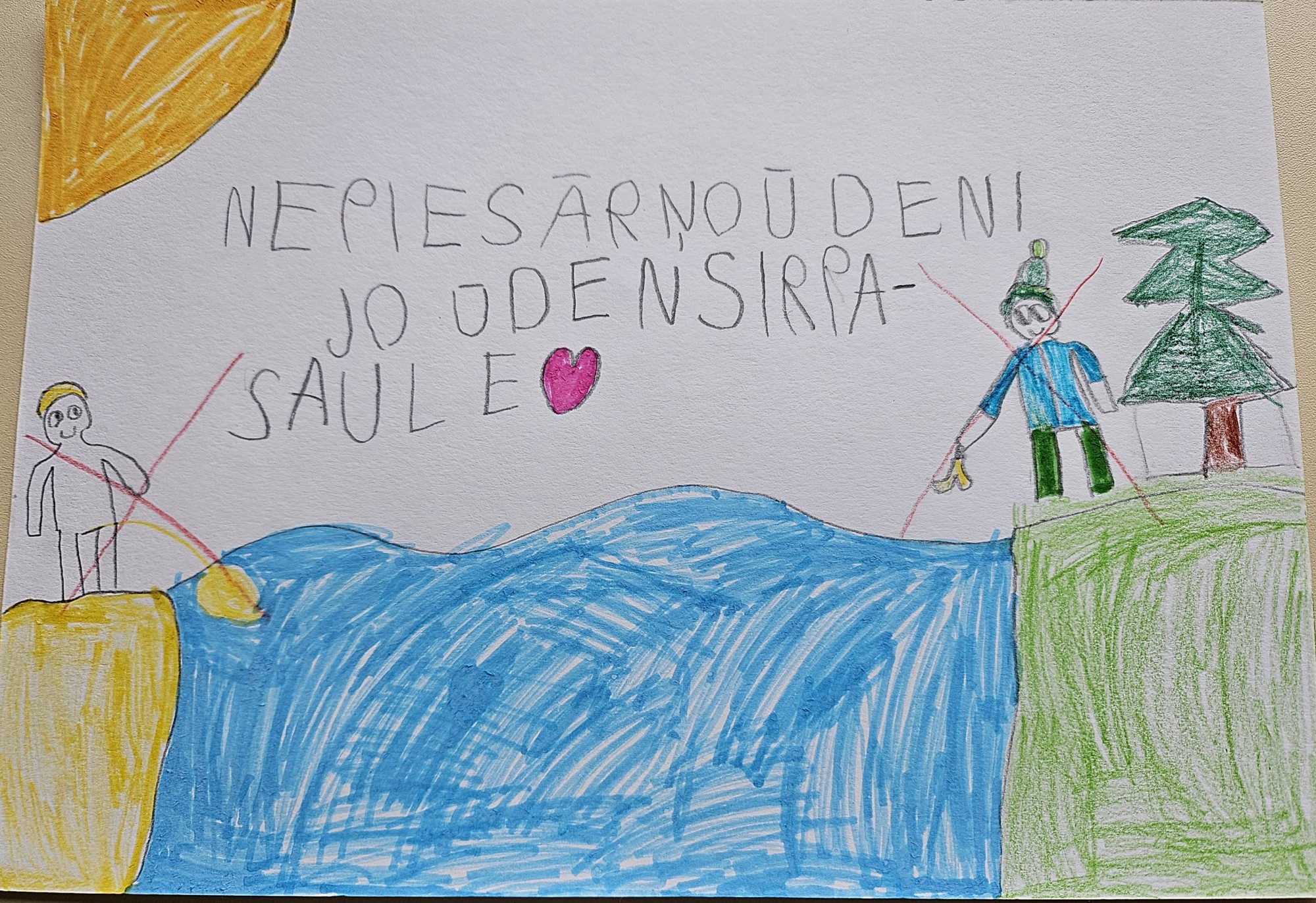 Marta Estere zīmējumā vēlējās parādīt to ko nedrīkst darīt jūrā, jo piesārņojot jūru mēs apdraudam gan sevi, gan dzīvās radības, kuras dzīvo ūdenī.
