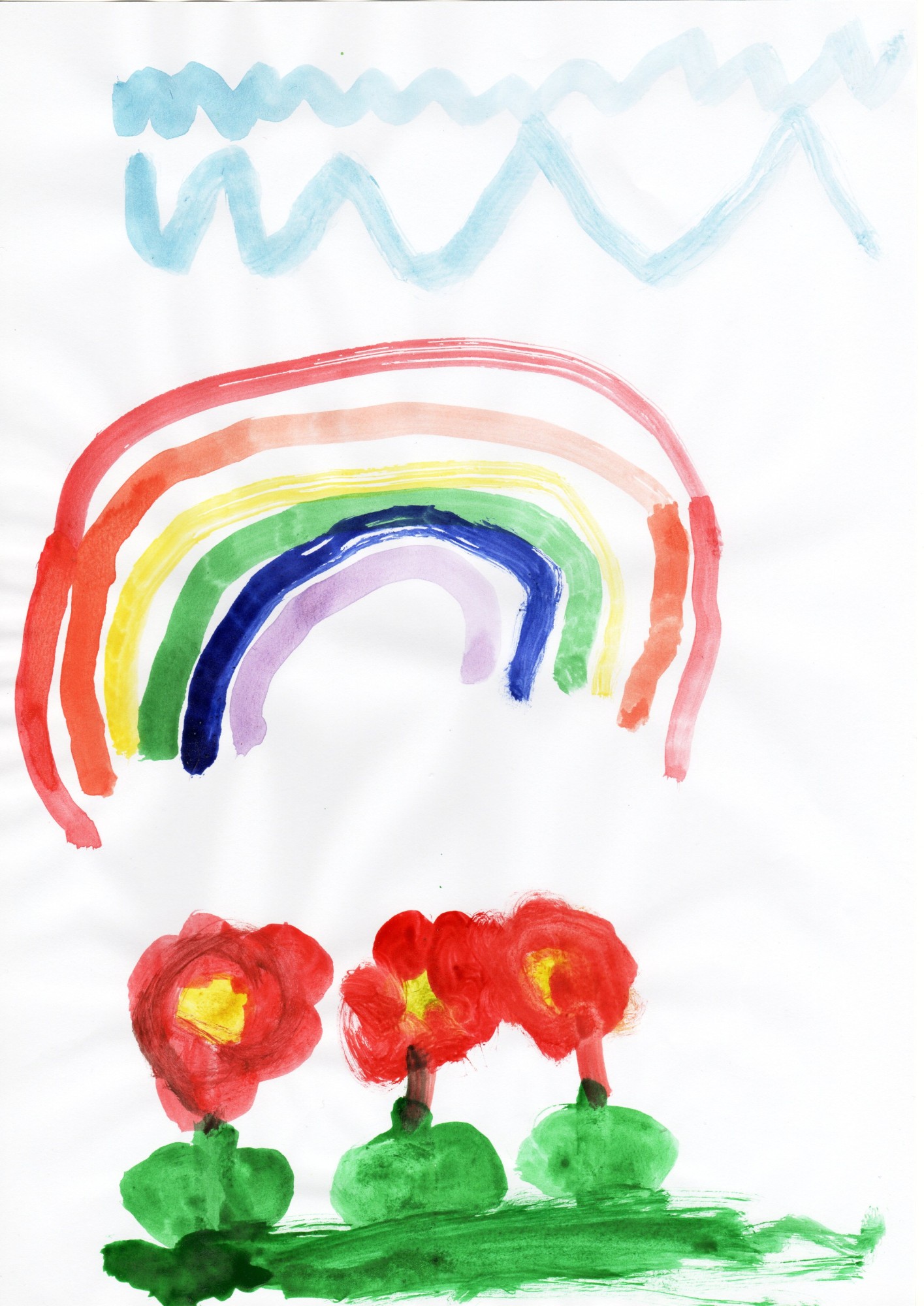 Pēc lietus parādās varavīksne un uzzied ziedi.