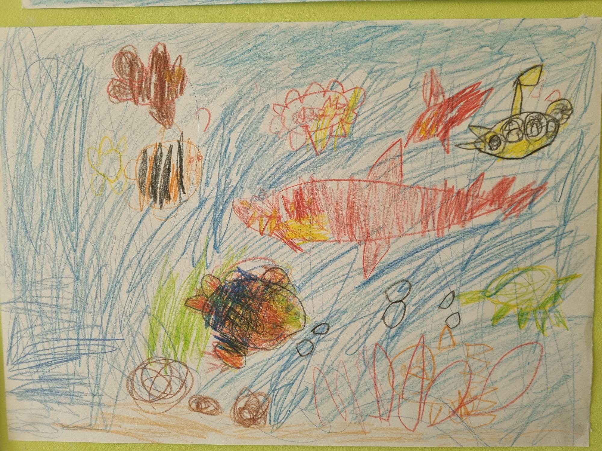 Darbiņš pēc pašu izdomātas pasakas par zivtiņu Mimi un viņas draudzeni lielo zivi, kuras dzīvoja okeānā.