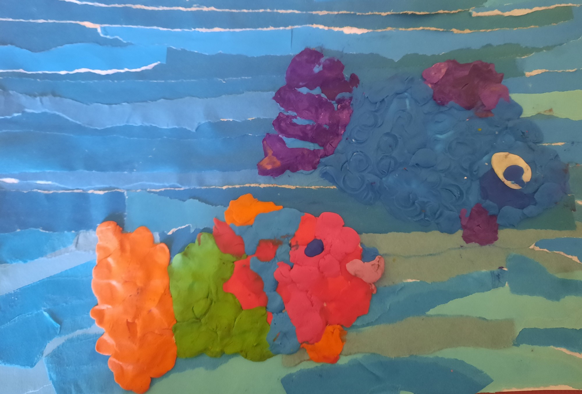 Jaukta tehnika. Alikāciju papīrs un plastilīns.