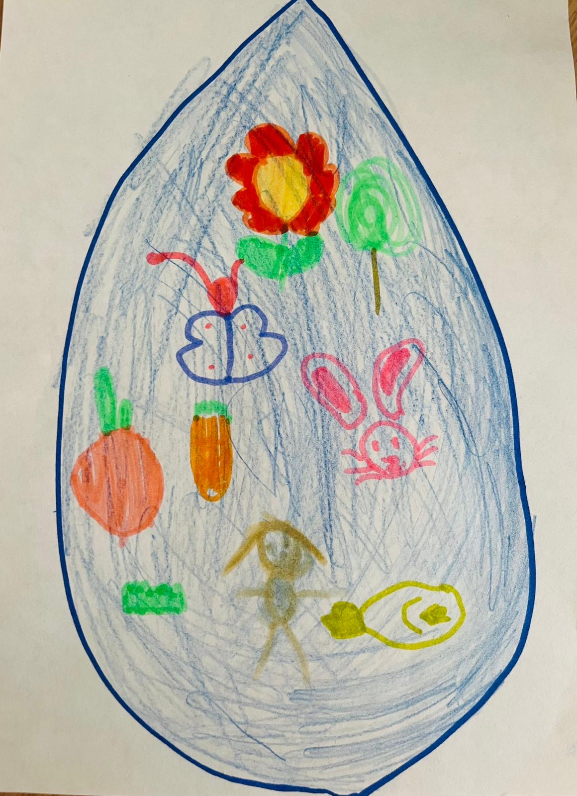 Zīmējuma attēlota ūdens piliens, kas simbolizē cik svarīgs ūdens ir dzīvībai. Tas parāda, ka ūdens nepieciešams, lai augtu ziedi un dārzeņi, ka arī lai dzīvotu dzīvnieki un cilvēki. Zīmējums atgādina , ka bez ūdens dzīvība uz zemes nebūtu iespējama.