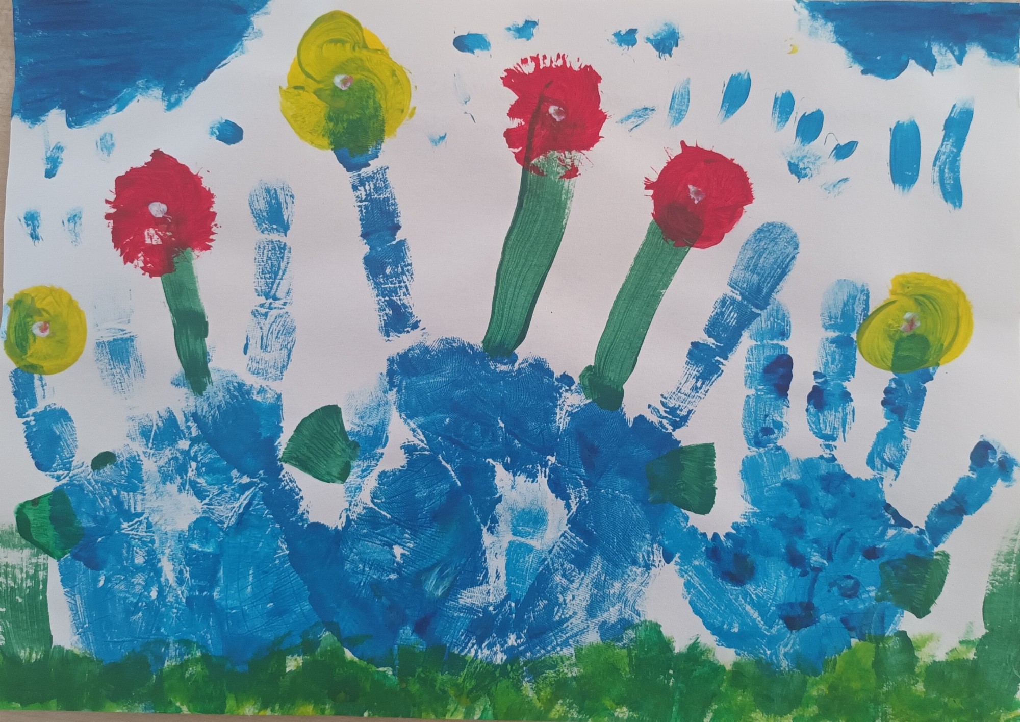 Te ir mammas, tēta un mana roka. Mums patīk ūdens. Ūdens palīdz puķēm augt un dabai būt skaistai.