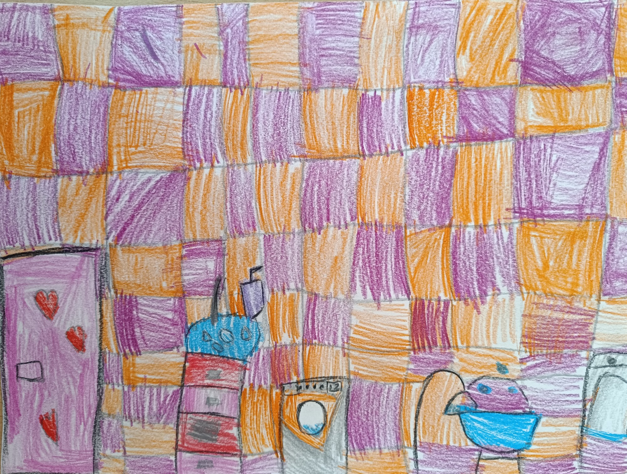 Ūdens mums vajadzīgs katru dienu. Bez ūdens mēs nevarētu iztikt. Darbs zīmēts ar krāsainajiem zīmuļiem.