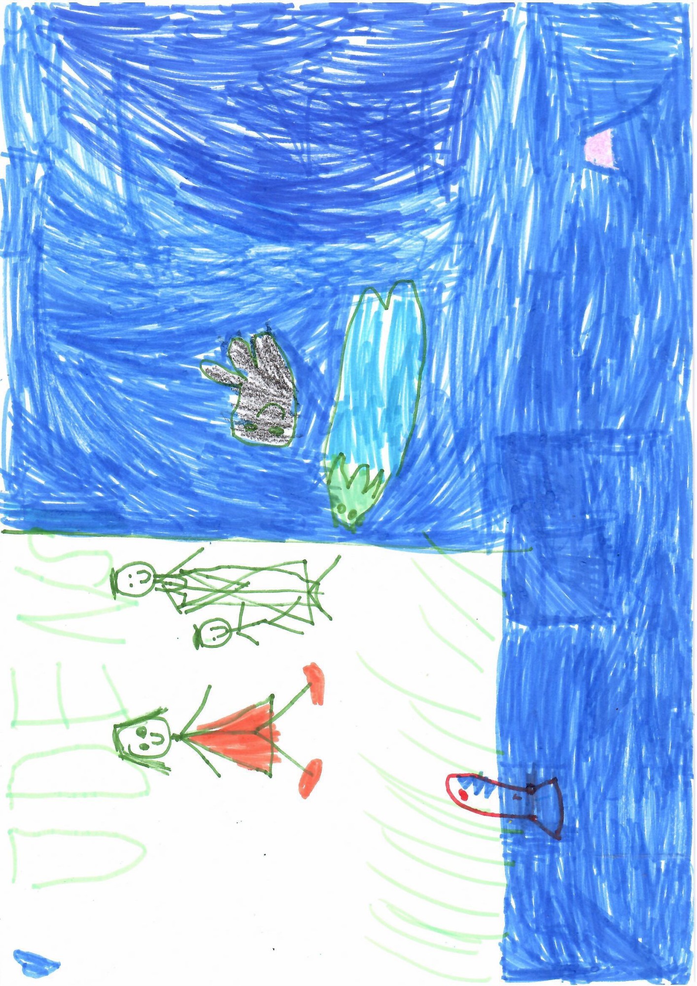 Visa ģimene makšķerē zivis.