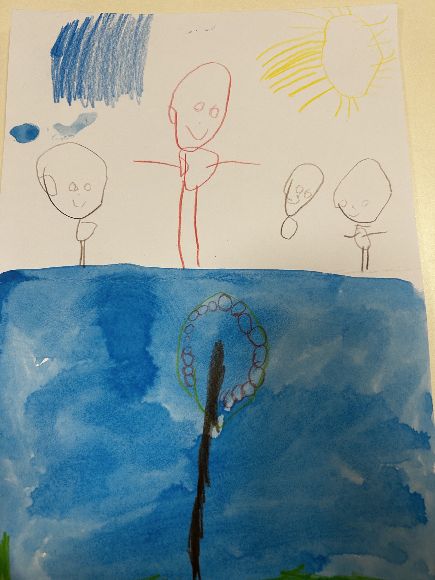Darbs parāda, cik svarīgs ūdens ir mūsu dzīvē - tas sniedz iespēju atpūsties, spēlēties un pavadīt laiku kopā ar ģimeni. Ūdens rada prieku un mieru.