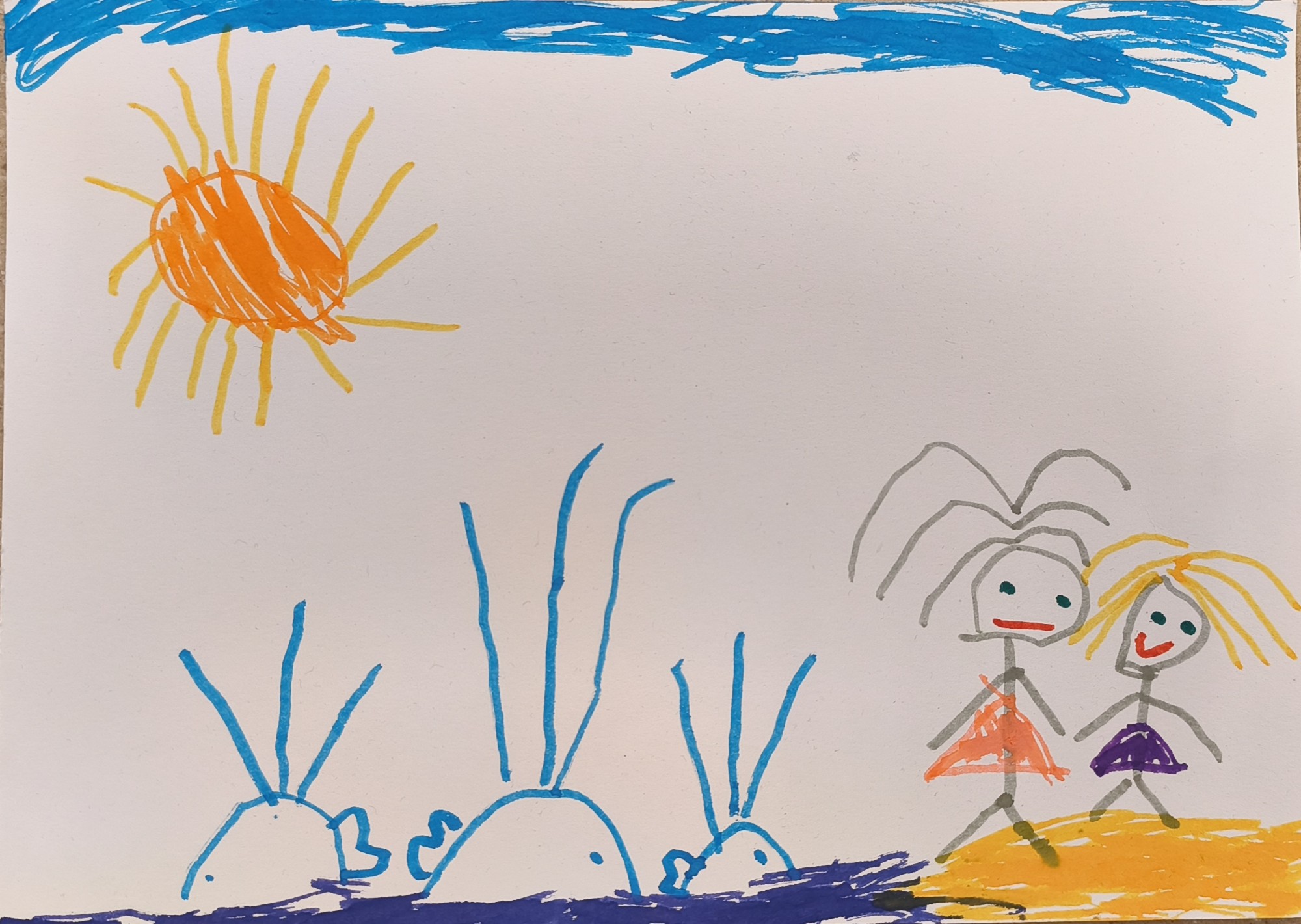 Zīmējumā redzama vaļu ģimene ūdenī un cilvēku ģimene uz zemes. Ūdens ir svarīgs visiem — gan cilvēkiem, gan dzīvniekiem. Tas dod dzīvību un savieno mūs.