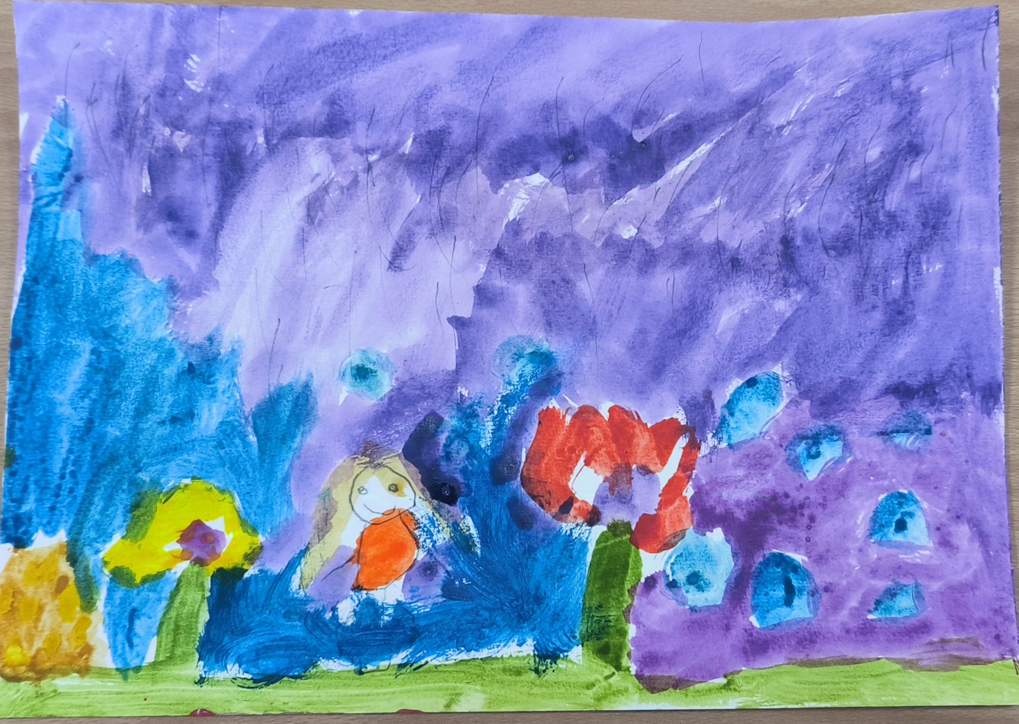 Meitenīte lēkā pa peļķēm, krāsainas šļakatas pa gaisu #22979