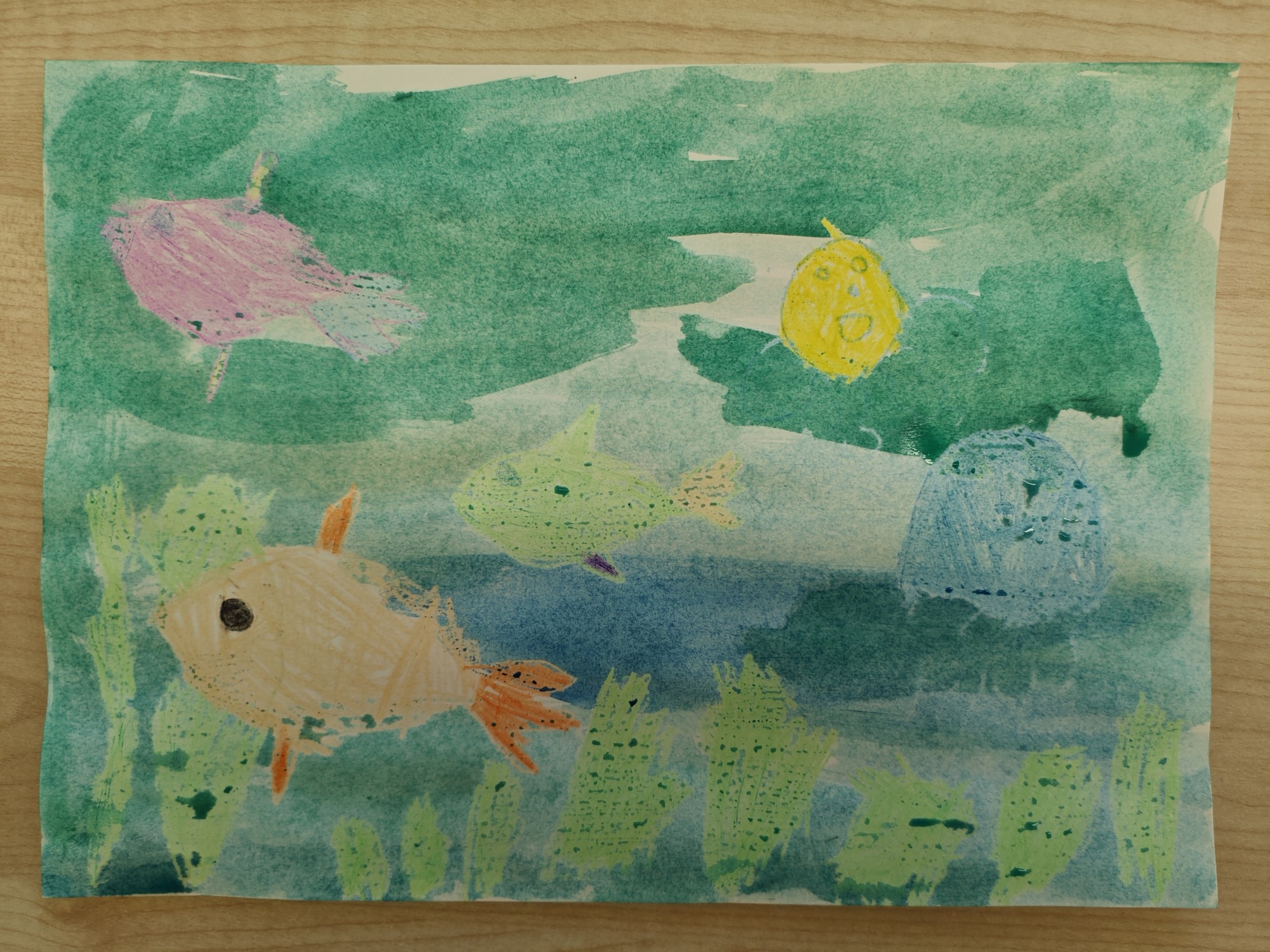 Zīmējumā attaisnota dzīve dziļi zem ūdens.