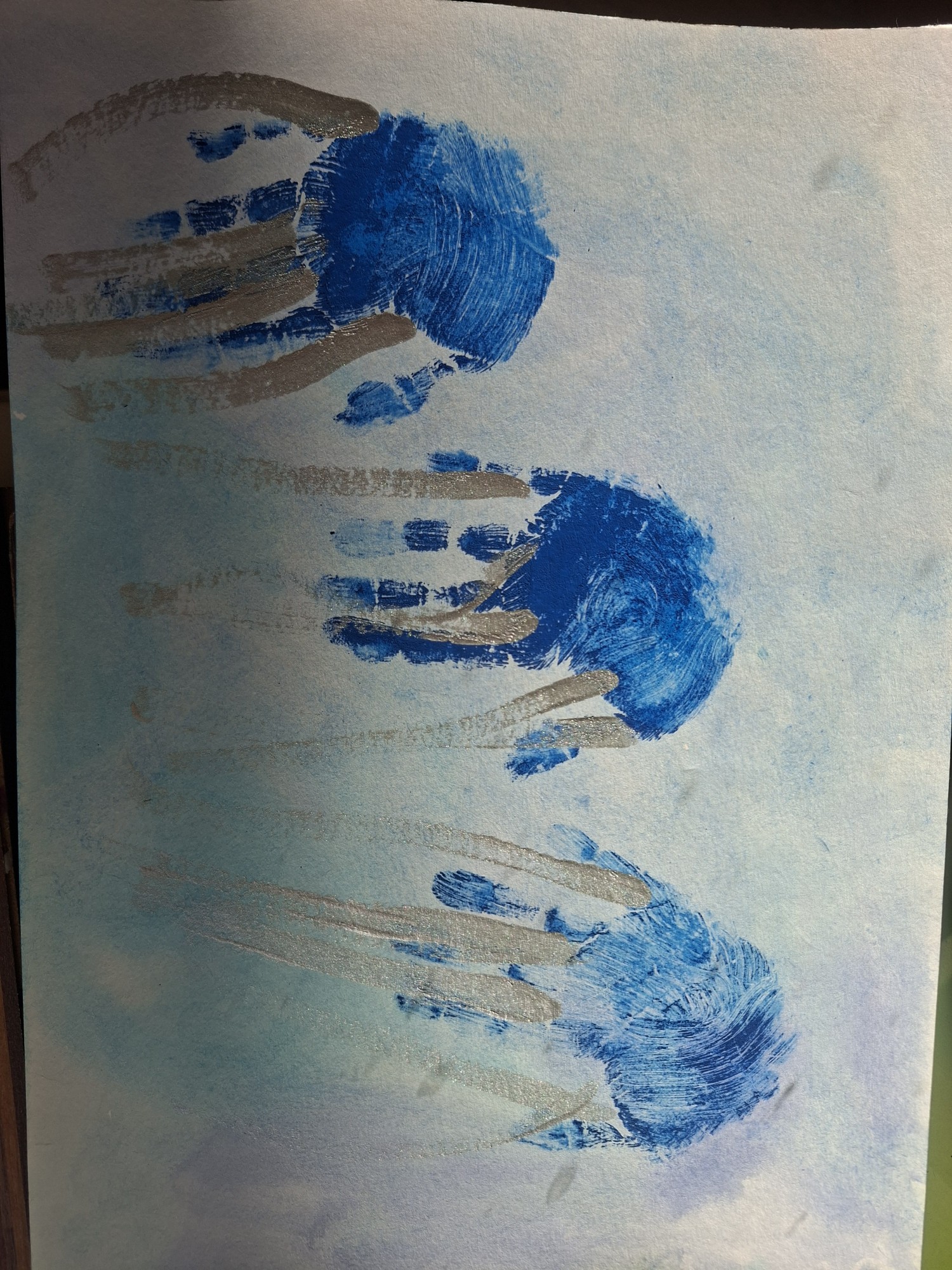 Darbs tapis dažādās zīmēsanas tehnikās izmantojot akvareli un guašu, atveidojot zemūdens radības par kurām tika runāts nodarbībā par ūdeni.