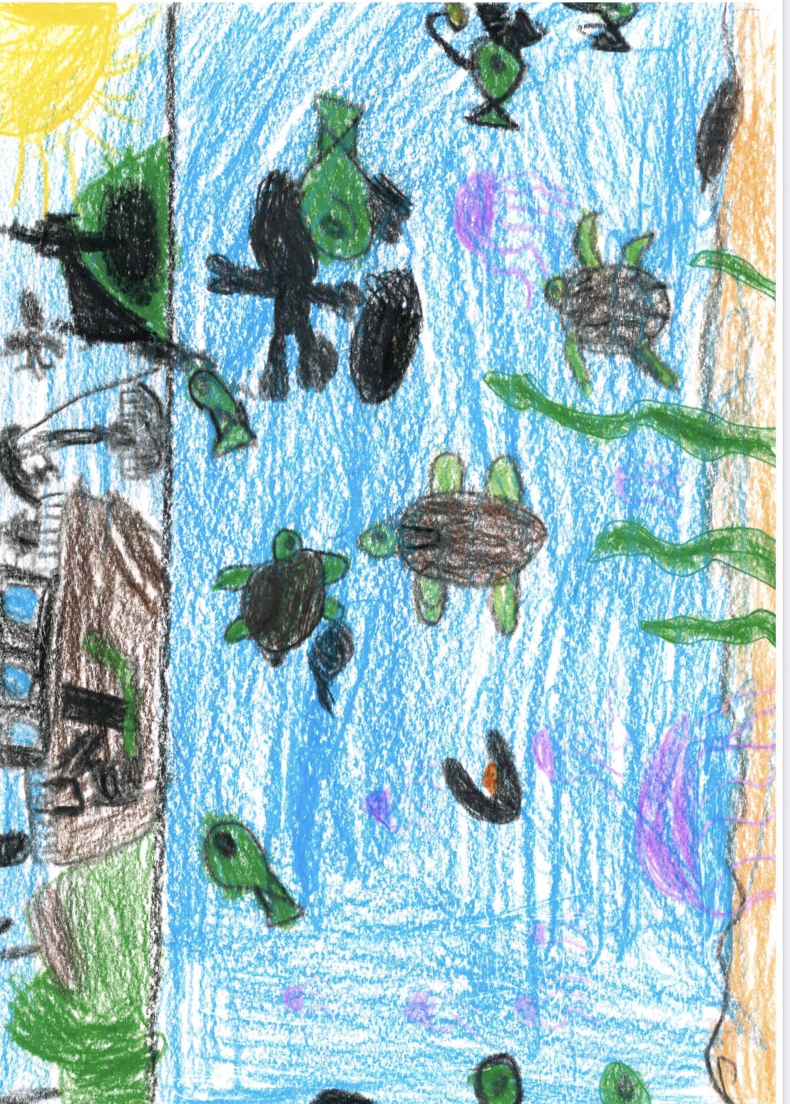 Zīmējumā ir attēlots okeāns, kas ir tīrs.