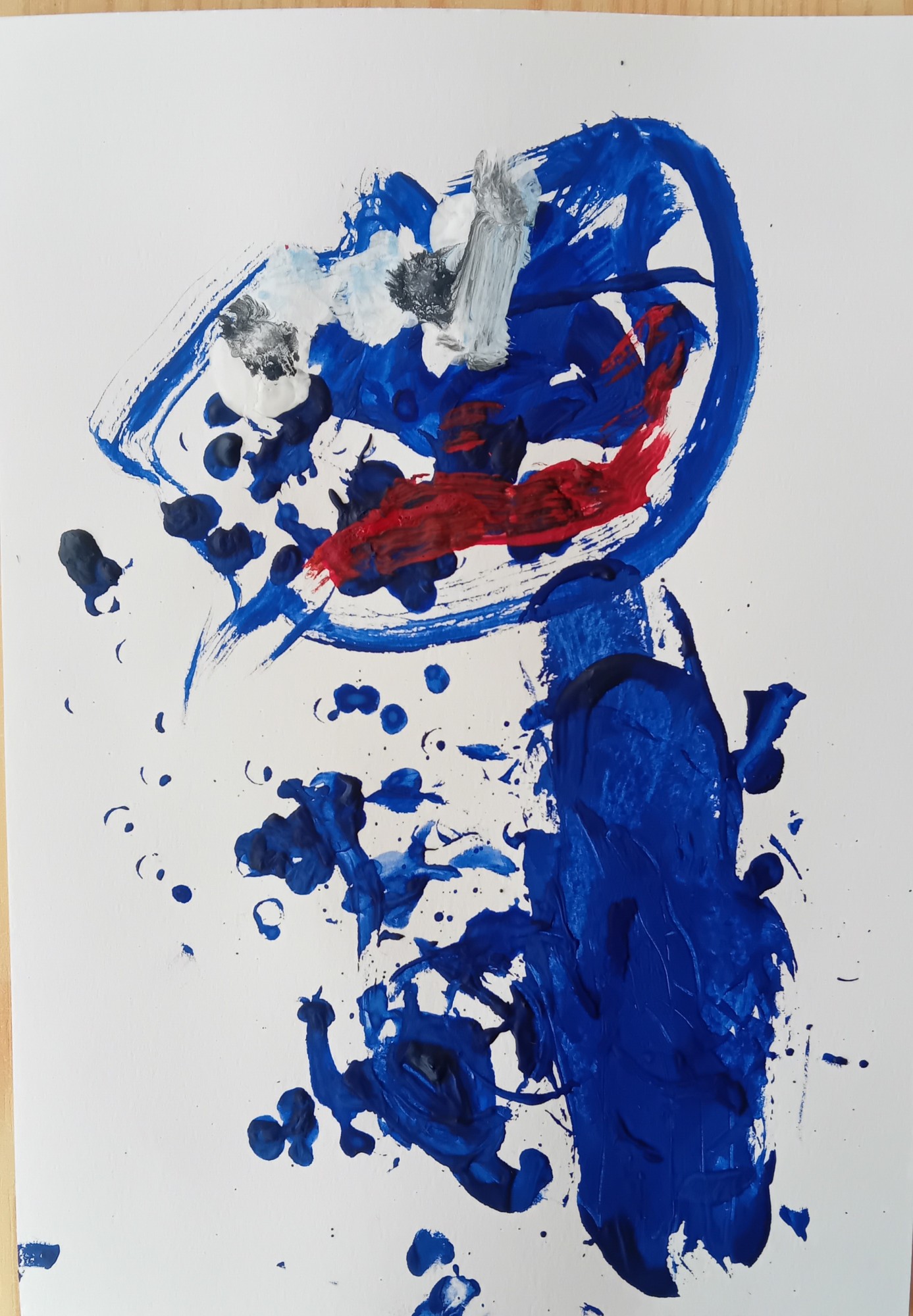 Darbs tapis guaša tehnikā, bērnudārza nodarbības laikā, izmantojot otas un salmiņus punktu veidošanai, kas bērniem ļāva eksperimentēt ar faktūrām un radīt dzīvas, emocionālas ūdens lāsītes.