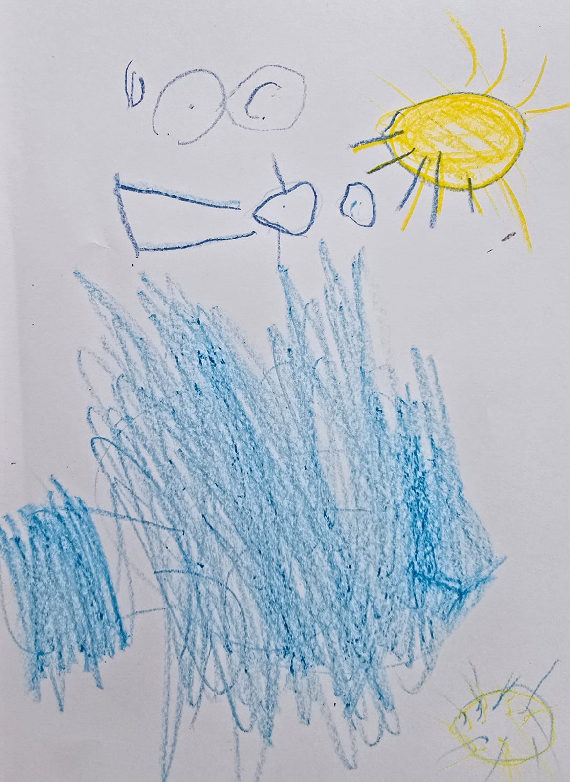 Zīmējumā attēlota jūra, saule, cilvēks un sniegavīrs. Tas parāda, ka ūdens mūsu pasaulē ir dažādos veidos - gan jūrā, gan sniegā. Ūdens ir svarīgs dabai un cilvēkiem.