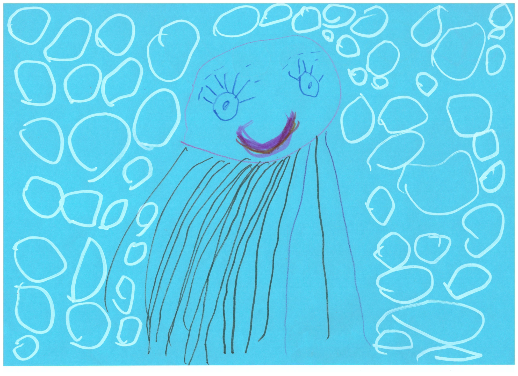 Medūza spēlējas ar ūdens burbuļiem. Tāpēc viņa ir jautra.
